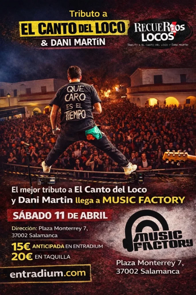 El sábado 11 de abril, Music Factory Salamanca acoge a Recuerdos Locos, el espectáculo definitivo en tributo a El Canto del Loco y Dani Martín.
